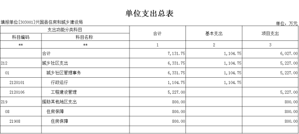 第三部分 興國縣住房和城鄉建設局單位預算表