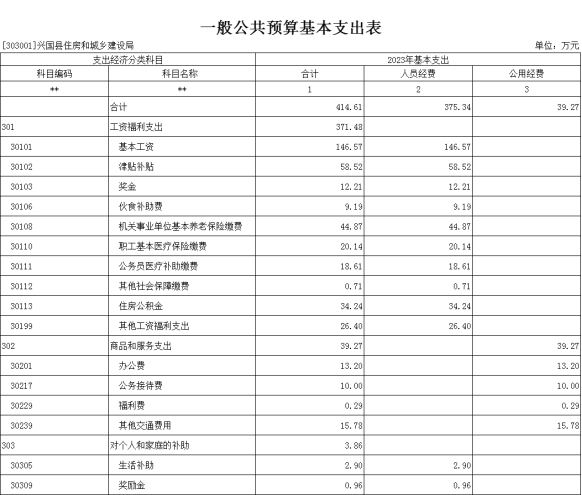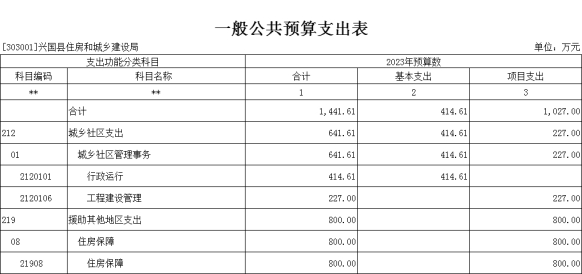 第三部分 興國縣住房和城鄉建設局2023年單位預算表