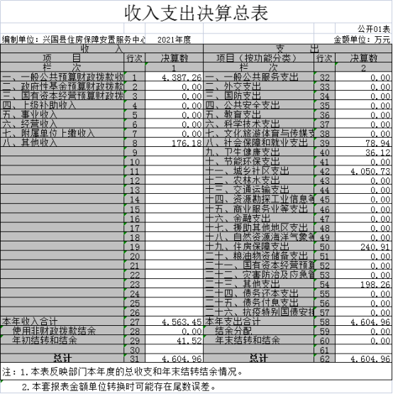 納入本套部門決算匯編范圍的單位共1個,包括:興國縣住房保障安置服務中心。