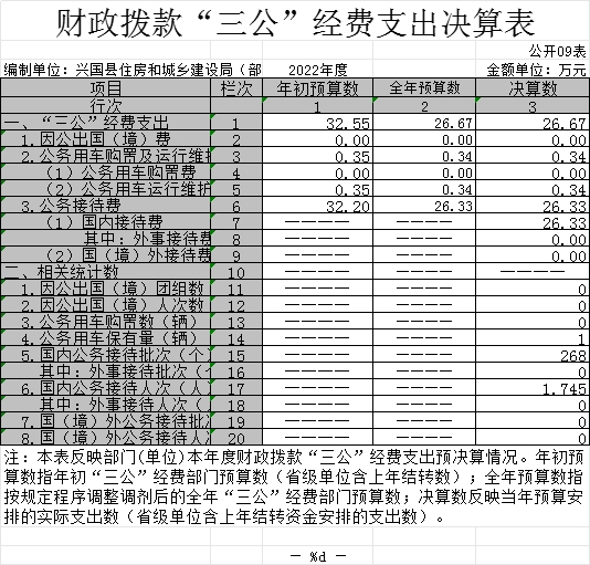 (十六)“三公”經費支出:指用財政撥款安排的因公出國(境)費、公務用車購置及運行維護費和公務接待費。其中,因公出國(境)費反映單位公務出國(境)的國際旅費、國外城市間交通費、住宿費、伙食費、培訓費、公雜費等支出;公務用車購置及運行維護費反映單位公務用車車輛購置支出(含車輛購置稅、牌照費),按規定保留的公務用車燃料費、維修費、過橋過路費、保險費、安全獎勵費用等支出;公務接待費反映單位按規定開支的各類公務接待(含外賓接待)支出。
