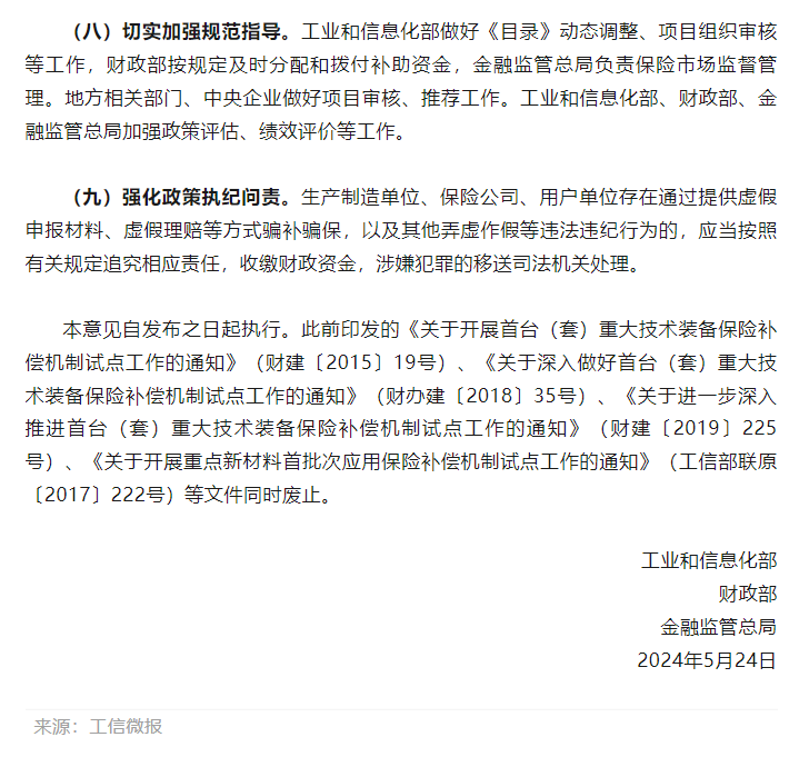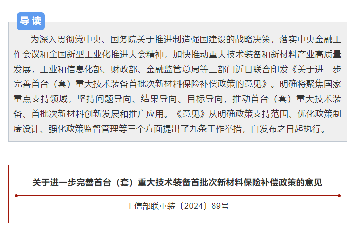 工信部等三部門進(jìn)一步完善首臺(tái)(套)重大技術(shù)裝備首批次新材料保險(xiǎn)補(bǔ)償政策