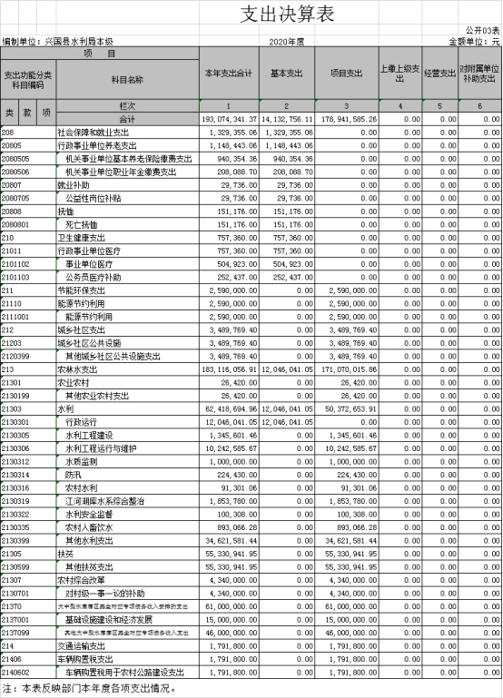 (一)農林水支出:除行政運行是反映行政單位(包括參公單位)的基本支出和部分項目支出外,其他均是專項業務支出。