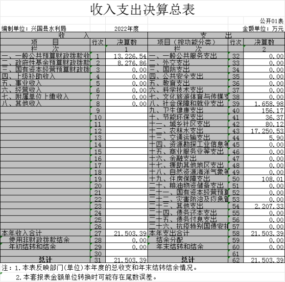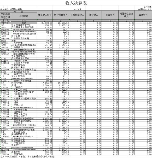 納入本套部門決算匯編范圍的單位共1個,包括:興國縣水利局本級。