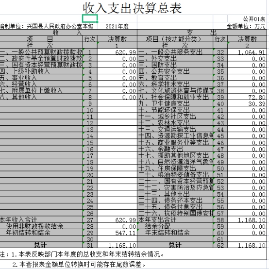 本單位2021年度收入總計 1168.1萬元,其中年初結轉和結余 547.11 萬元,較2020年增加107.01 萬元,增長 24 %;本年收入合計 620.99 萬元,較2020年減少 312.91 萬元,下降 33.5 %,主要原因是,壓縮各項支出,更加厲行節約,堅決過緊日子。