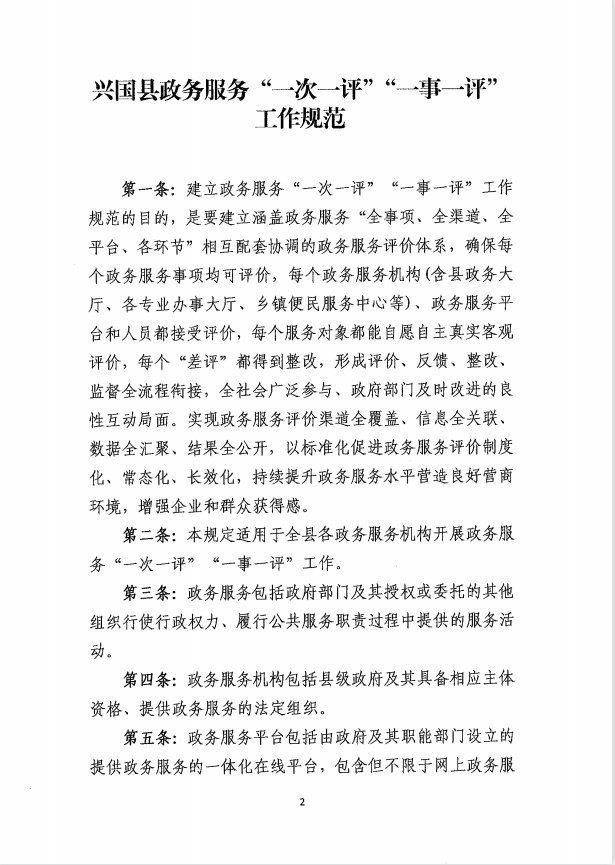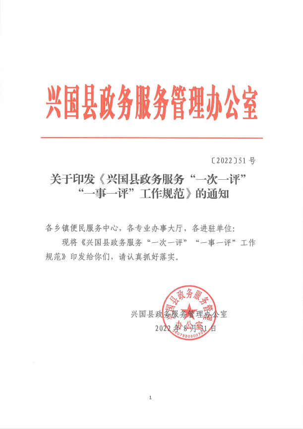 【部門文件】關于印發《興國縣政務服務“一次一評”“一事一評”工作規范》的通知