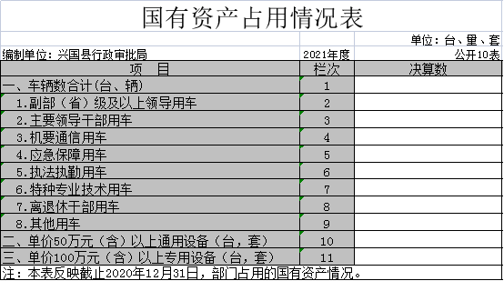 截止2021年12月31日,本部門國有資產占用情況見公開10表《國有資產占用情況表》。其中車輛中的其他用車主要是無。