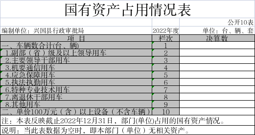 截止2022年12月31日,本部門國有資產占用情況見公開10表《國有資產占用情況表》。其中車輛中的其他用車主要是無。