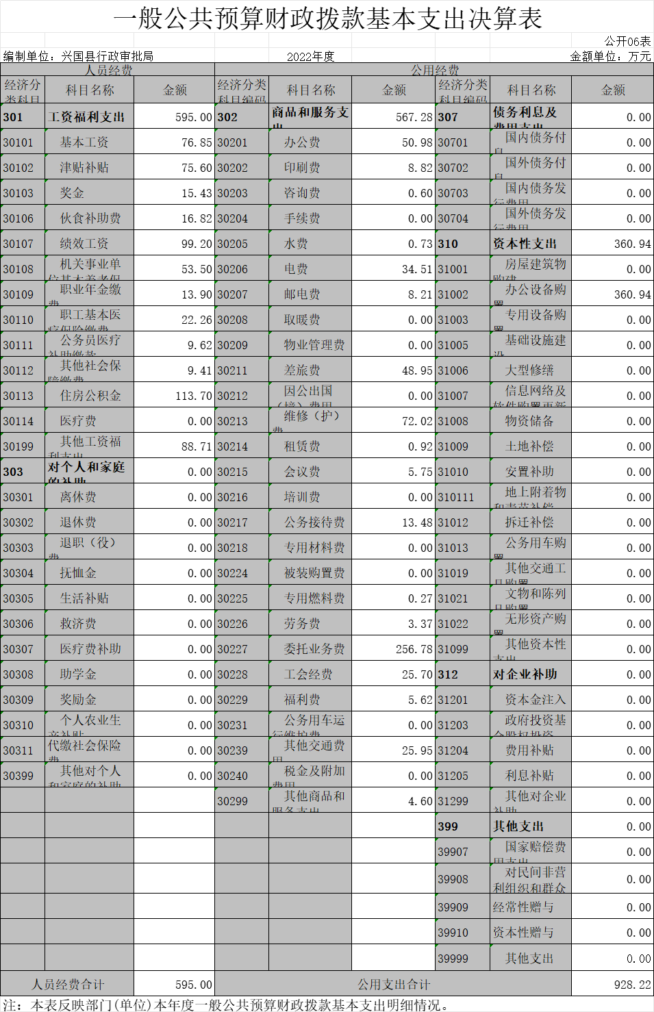 興國縣行政審批局2022年度部門決算