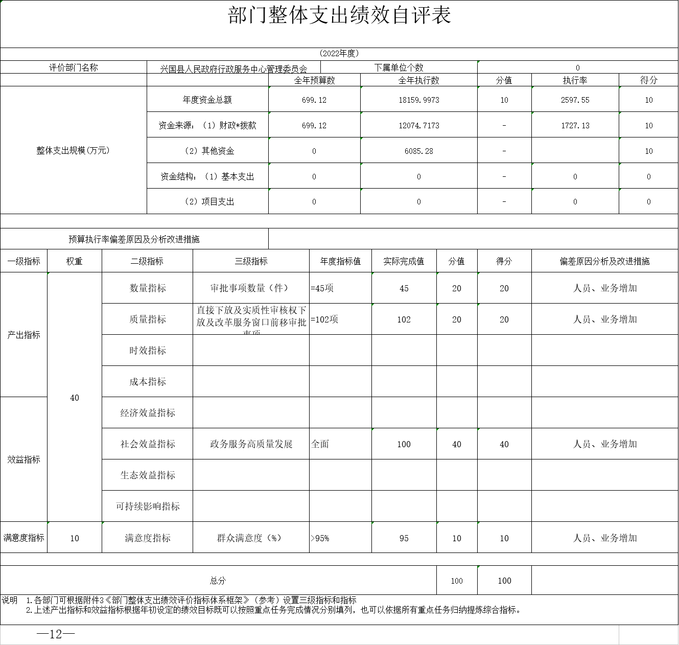 2022年度我局整體支出績效評價得分100分,評價等級為優。