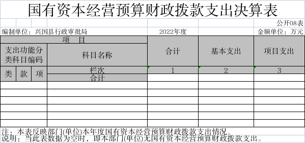 八、國有資本經營預算財政撥款支出決算表