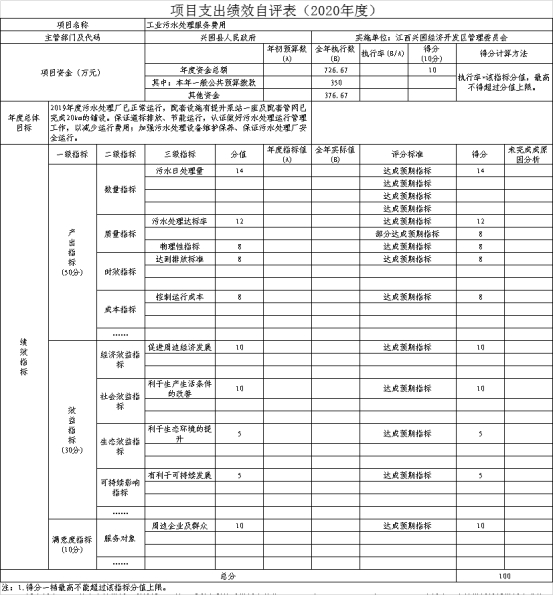 (二)部門決算中項目績效自評結果。我部門今年在部門決算中反映工業污水處理服務費用項目績效自評結果。