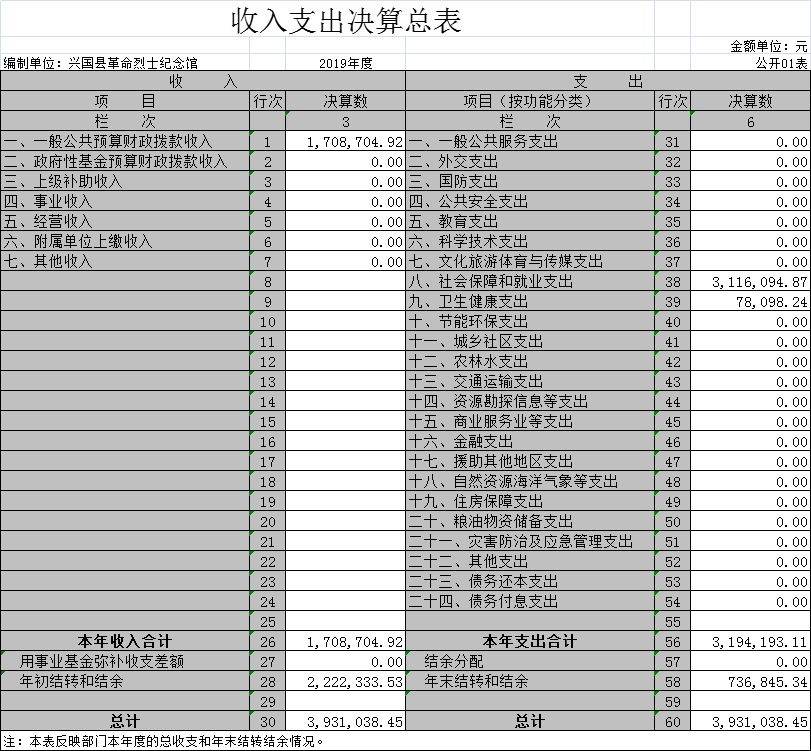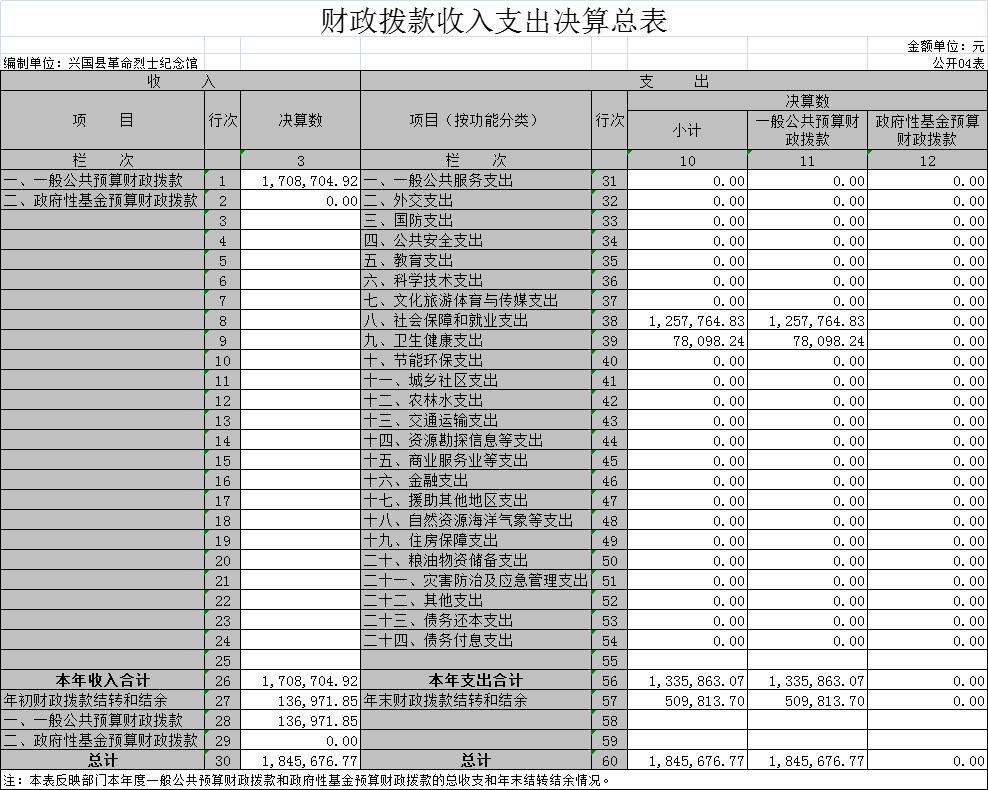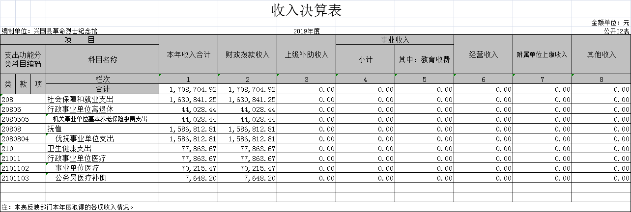納入本套部門決算匯編范圍的單位共1個。興國縣革命烈士紀念館為興國縣退役軍人事務局下屬全額撥款事業(yè)單位。