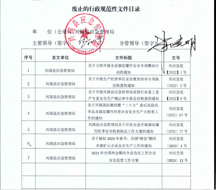 【有效】【規范性文件清理】興國縣應急管理局廢止的行政規范性文件目錄