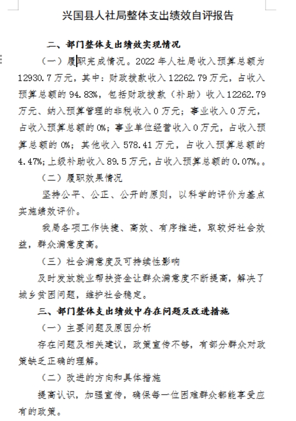 第一部分 興國縣人力資源和社會保障局部門概況