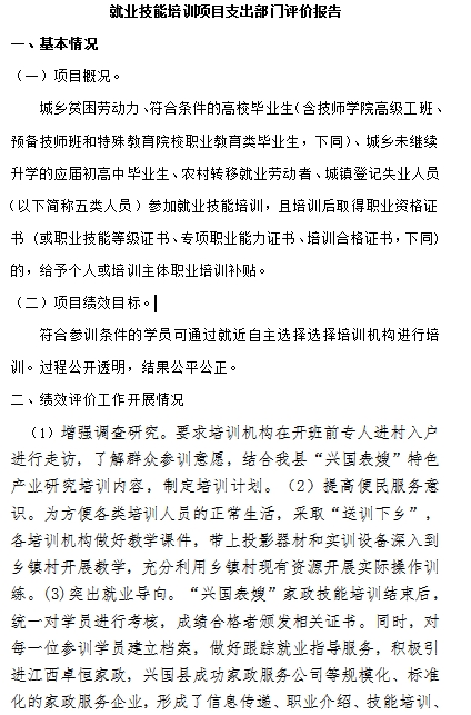 本部門公開就業技能培訓項目支出部門評價報告項目部門評價報告(見附件)。