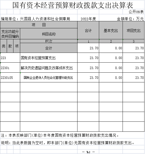 八、國有資本經營預算財政撥款支出決算表