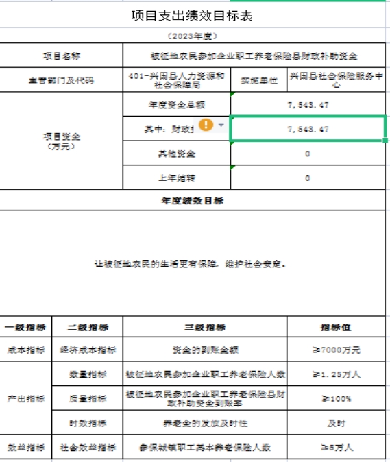 項目名稱:被征地農民參加企業職工養老保險縣財政補助資金