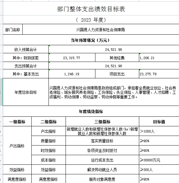 2023年人社局部門共有預算單位3個,包括:興國縣人力資源和社會保障局機關、興國縣社會保險服務中心、興國縣就業創業服務中心。