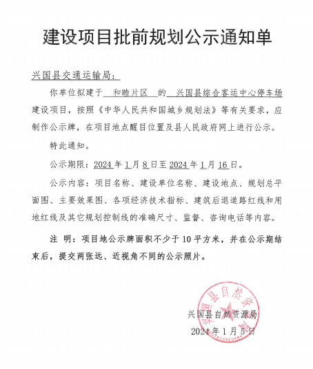 興國縣綜合客運中心停車場建設項目規劃批前公示