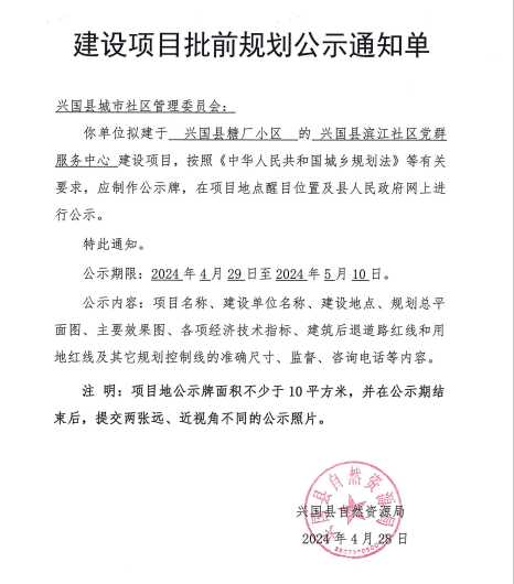 建設(shè)項(xiàng)目批前規(guī)劃公示通知單