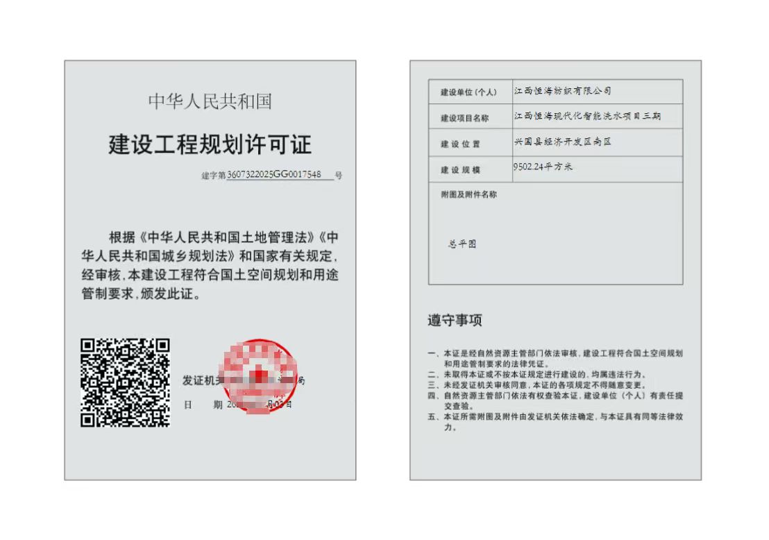 (江西恒海現代化智能洗水項目三期)建設工程規劃許可批后公布