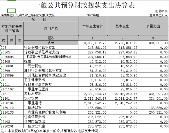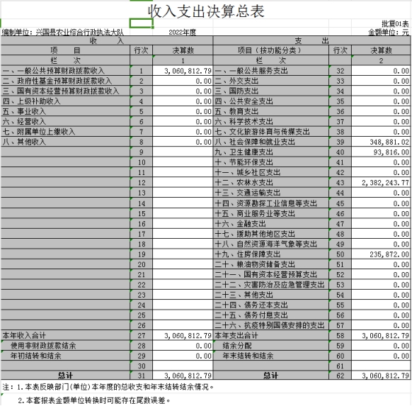 興國縣農業綜合行政執法大隊2022年度決算