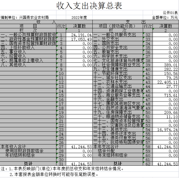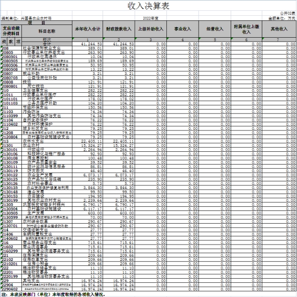 本單位2022年度收入總計41244.53萬元,其中年初結轉和結余 0 萬元,較2021年增加(減少)13112.89 萬元,下降100%;本年收入合計41244.53萬元,較2021年減少1734.23 萬元,下降4 %,主要原因是:2022年較上一年減少了農林水相關項目支出。