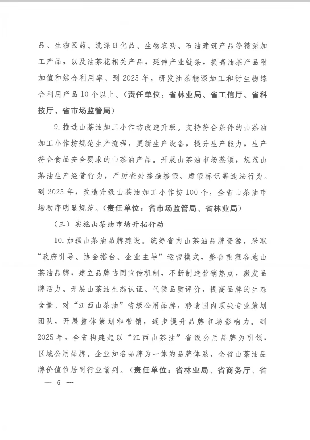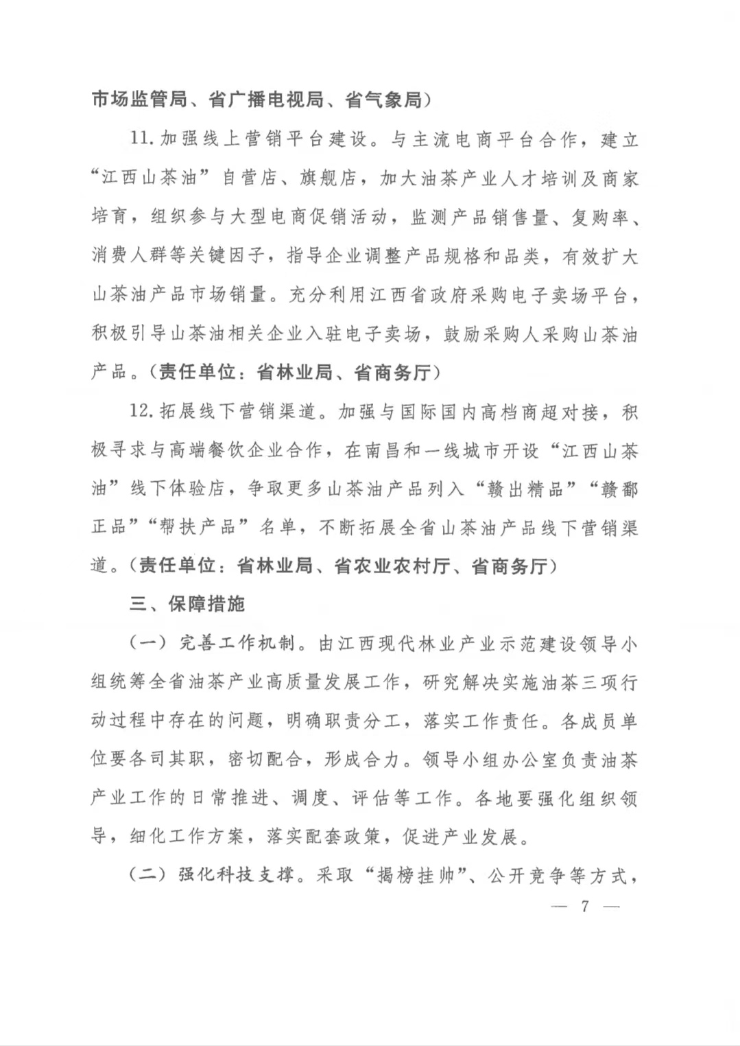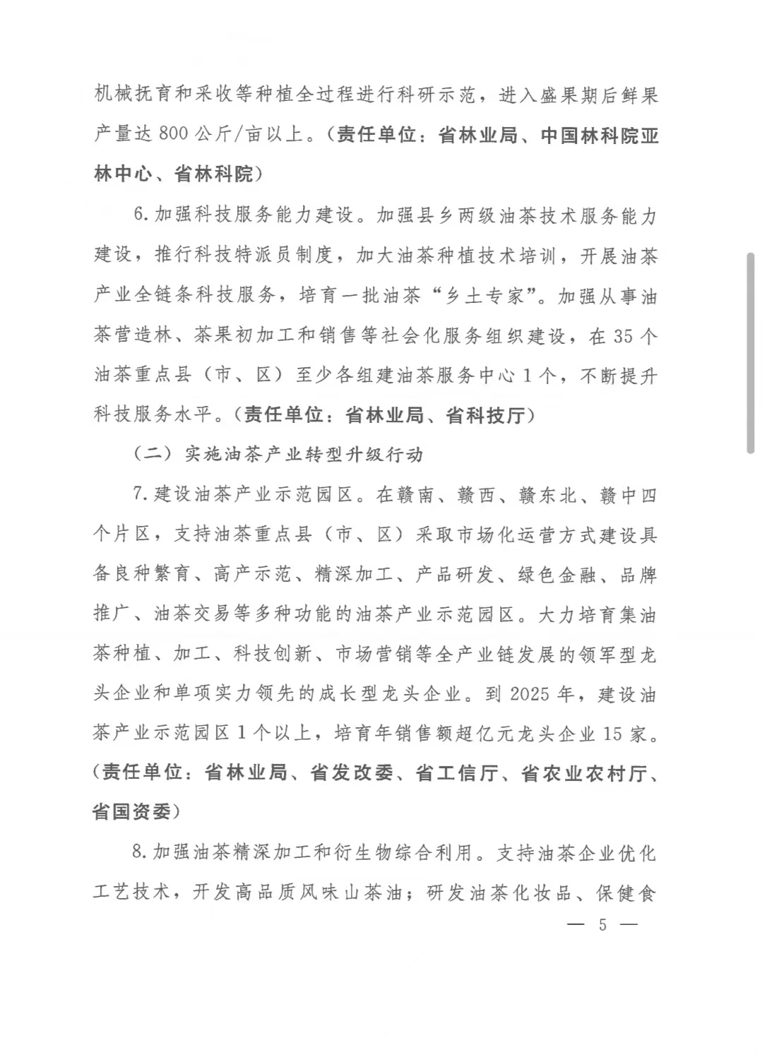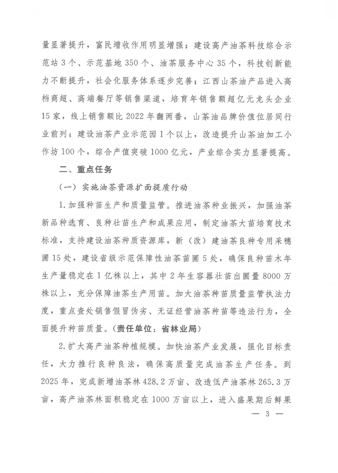 江西省人民政府辦公廳關于印發《江西省推動油茶產業高質量發展三年行動計劃(2023-2025年)》的通知