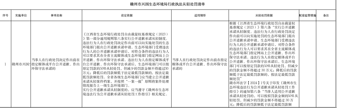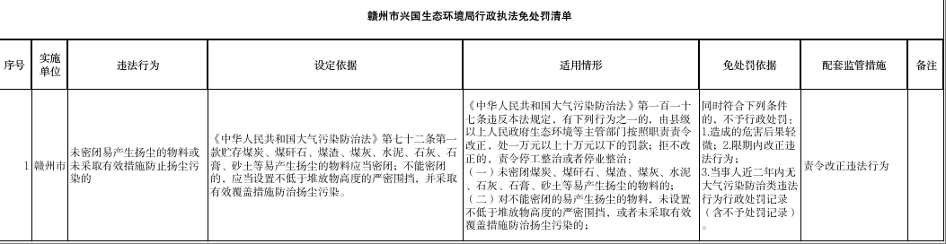 贛州市興國(guó)生態(tài)環(huán)境局行政執(zhí)法四張清單