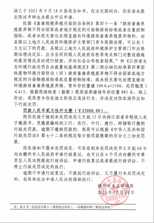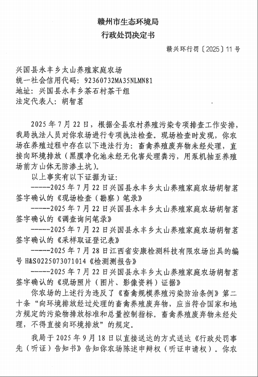 興國縣永豐鄉太山養殖家庭農場行政處罰決定書公示(贛興環行罰【2025】11號)
