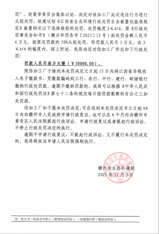 興國振忠塑料顆粒加工廠行政處罰決定書公示(贛興環(huán)行罰【2025】12號)