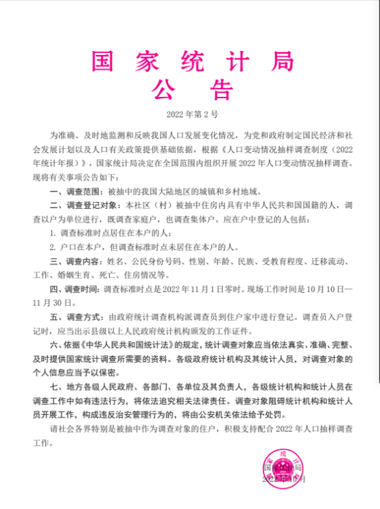 本次調(diào)查的標(biāo)準(zhǔn)時(shí)間為2022年11月1日零時(shí)。