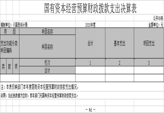 九、國有資本經營預算財政撥款支出決算表
