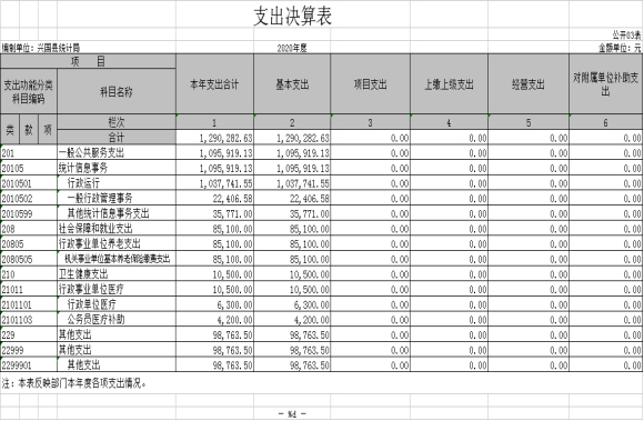 縣統計局部門2020年度單位決算