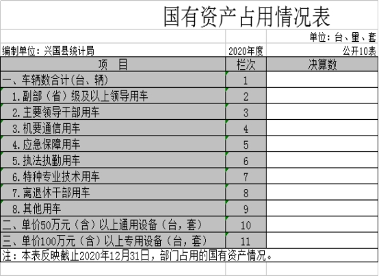 十、國有資產占用情況表
