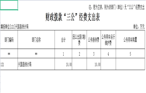2023年興國縣統計局單位“三公”經費一般公共預算安排10萬元。其中: