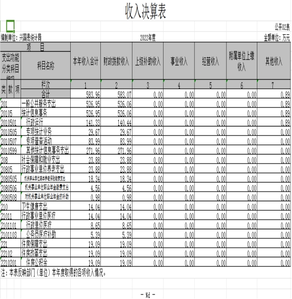 納入本單位決算匯編范圍的單位共 1 個,包括:興國縣統計局機關。興國縣統計局機關有下設單位1個興國統計普查中心(非獨立核算),為統計局內設機構。興國縣統計局總編制21人(含統計普查中心)其中:行政編制8人、事業編制13人。