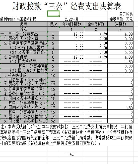 (二)公務接待費支出全年預算數為4.89萬元,決算數為 4.89萬元,完成全年預算的100%,決算數較2021年增加0萬元,增長0%,主要原因是嚴格遵守公務接待費支出規定。決算數較全年預算數增加0萬元的主要原因是:嚴格遵守公務接待費支出規定,嚴格執行財務制度。全年國內公務接待55批,累計接待489人次,其中外事接待0批,累計接待489人次,主要為:省市縣統計部門來我縣公務接待。