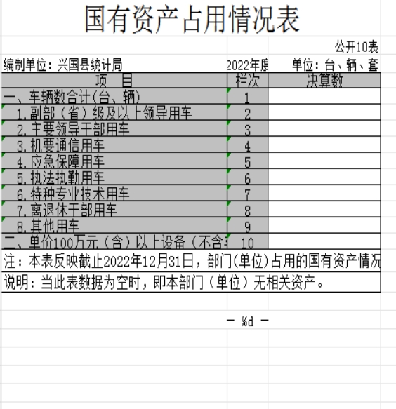 十、國有資產占用情況表