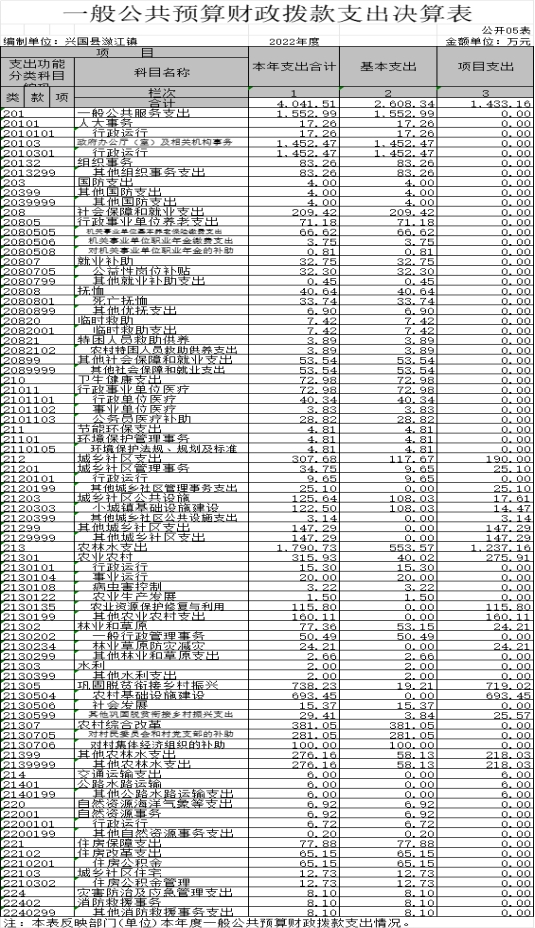 2022 年我單位共設立項目績效 99,為鄉鎮事業資金,項目實施單位為興國縣瀲江鎮人民政府,2022年初預算數 8438.0467萬元, 全年預算數8438.0467萬元, 全年執行數 8438.0467萬元,全部由縣財政撥款。