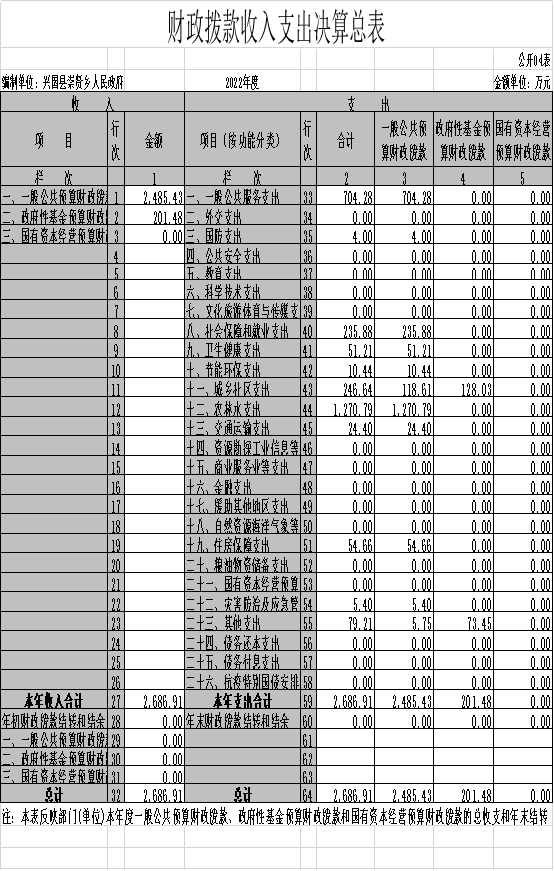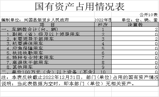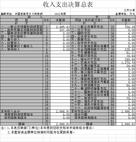 納入本套單位決算匯編范圍的單位共1個,包含:興國縣崇賢鄉人民政府。