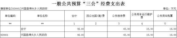 2022年興國縣埠頭鄉(xiāng)人民政府部門或單位“三公”經(jīng)費一般公共預(yù)算安排98萬元。其中: