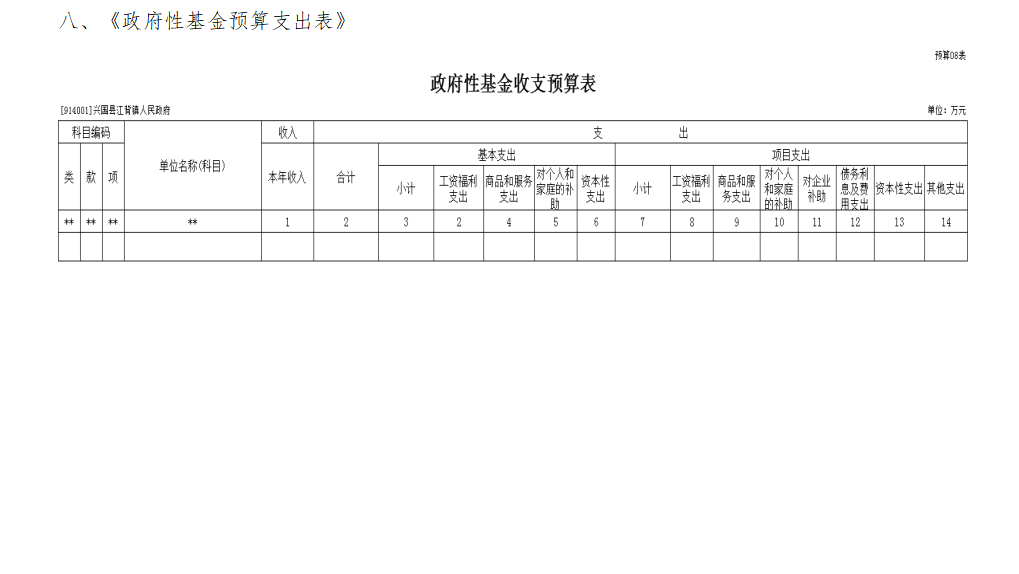 八、《政府性基金預算支出表》