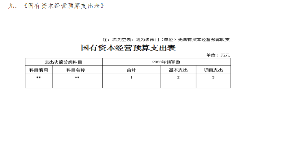 九、《國有資本經營預算支出表》