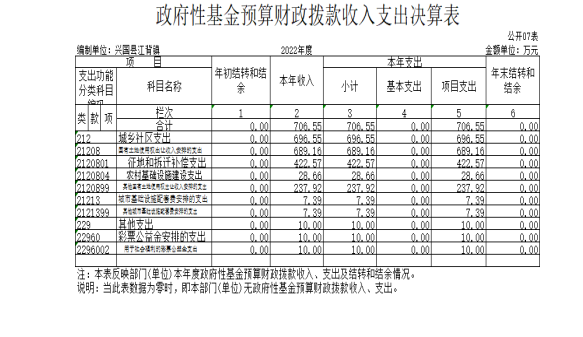 七、政府性基金預(yù)算財(cái)政撥款收入支出決算表