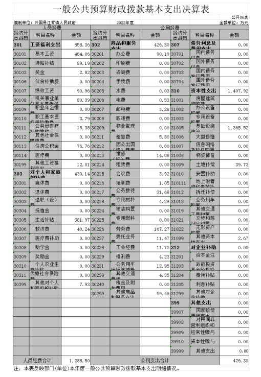 六、一般公共預(yù)算財(cái)政撥款基本支出決算表