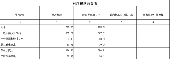 按支出功能科目劃分:一般公共服務支出430.71萬元,社會保障和就業支出58.36萬元;衛生健康支出39.76萬元,;農林水支出304.56萬元;住房保障支出38.19萬元。