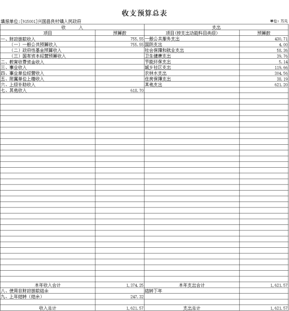 2022年興國縣良村鎮人民政府支出預算總額為支出預算總額為1621.57萬元,較上年預算安排增加735.32萬元;其中: