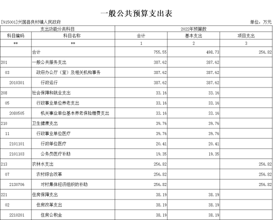 第二部分 興國縣良村鎮人民政府2022年部門預算表