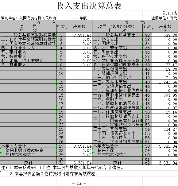 良村鎮(zhèn)2022年度部門決算